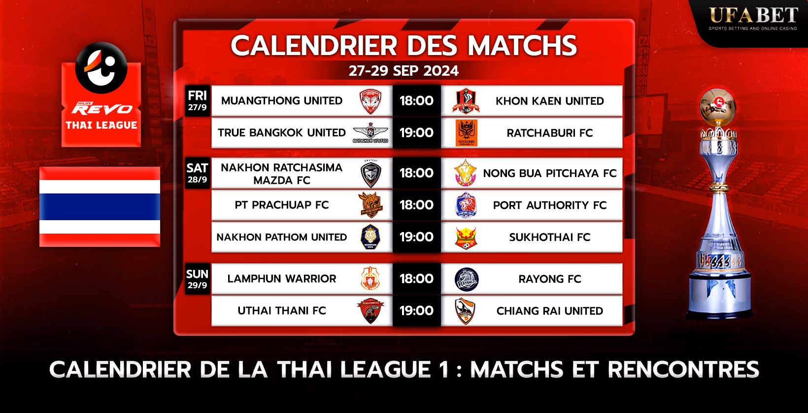 Calendrier de la Thai League 1 : Rencontres et Matchs